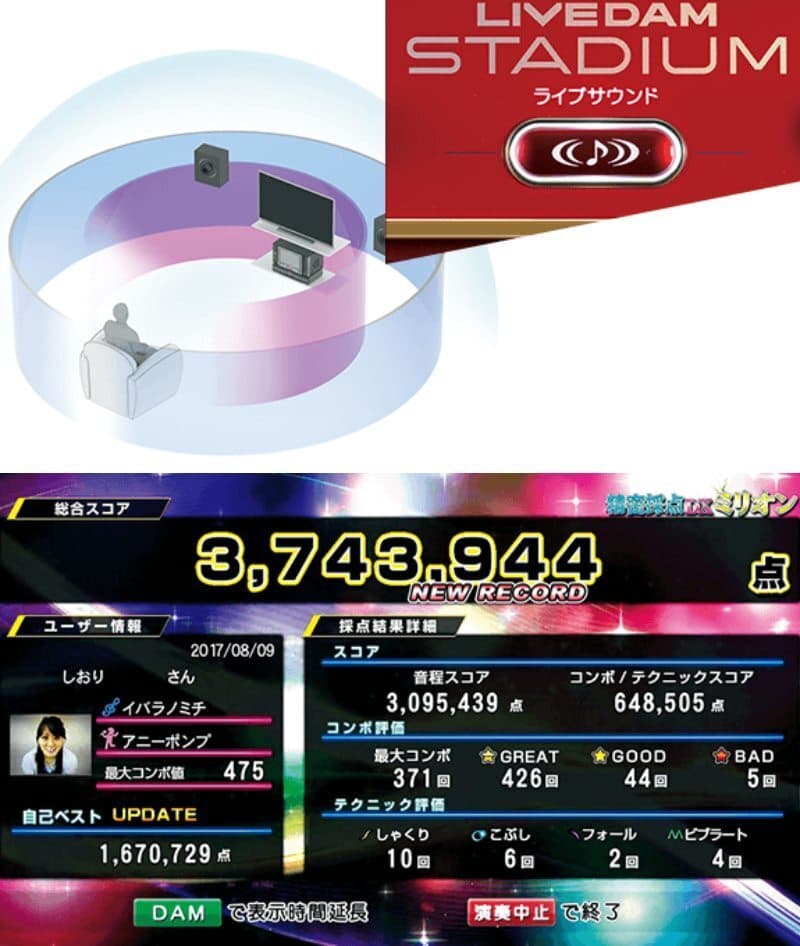 カラオケDAMのLIVE DAM STADIUM STAGEはダイナミックな映像と臨場感あふれる高品質なサウンドで圧倒的なライブ感を演出!感性に響く、新時代のカラオケ空間を創り出します。全身を立体感あふれる音で包み込む迫力のサウンド空間に早変わり。