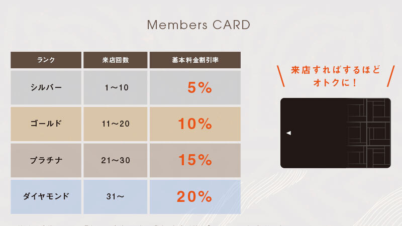 7 .サービスルームのご利用時は上記特典は適用されません。来店回数のみ付加されます。