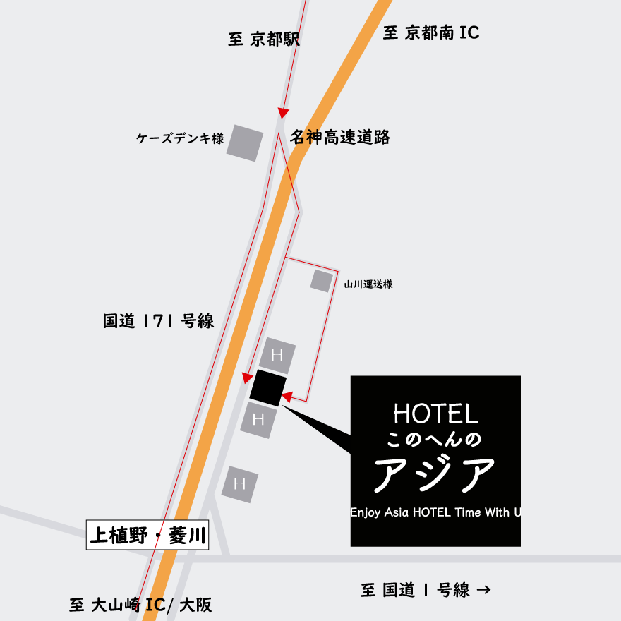 京都市伏見区・国道171号線沿いに位置し、京都観光にも非常にアクセスが便利です。